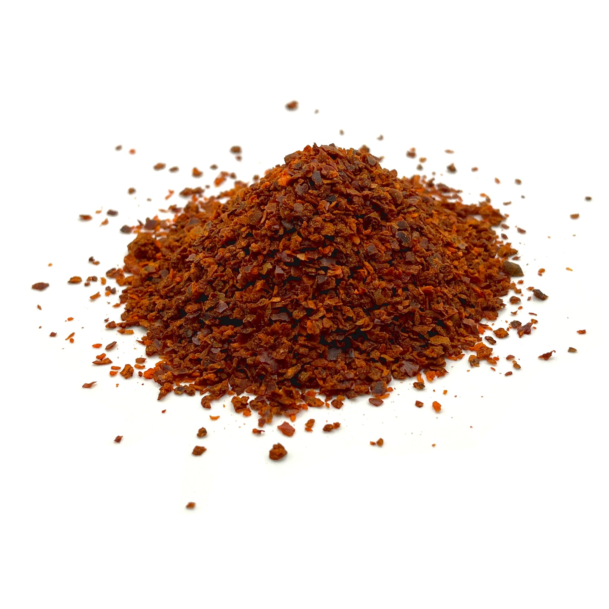 Description: Also known as the Halaby Pepper, Turkish Pepper, or the Flake Pepper, the Aleppo pepper gets its name from the city of Aleppo in Northern Syria. Widely cultivated and harvested in Syria and Turkey, the Aleppo Pepper is a Middle Eastern and Mediterranean staple used to add a complex bright, earthy, fruity, slightly tart flavor with a moderate heat to foods of all types. Ground into a deep burgundy colored coarse powder with a medium heat level of 10,000 Scoville units (about one third to one half that of Cayenne) but with an incredible amount of flavor that truly amps up any dish.