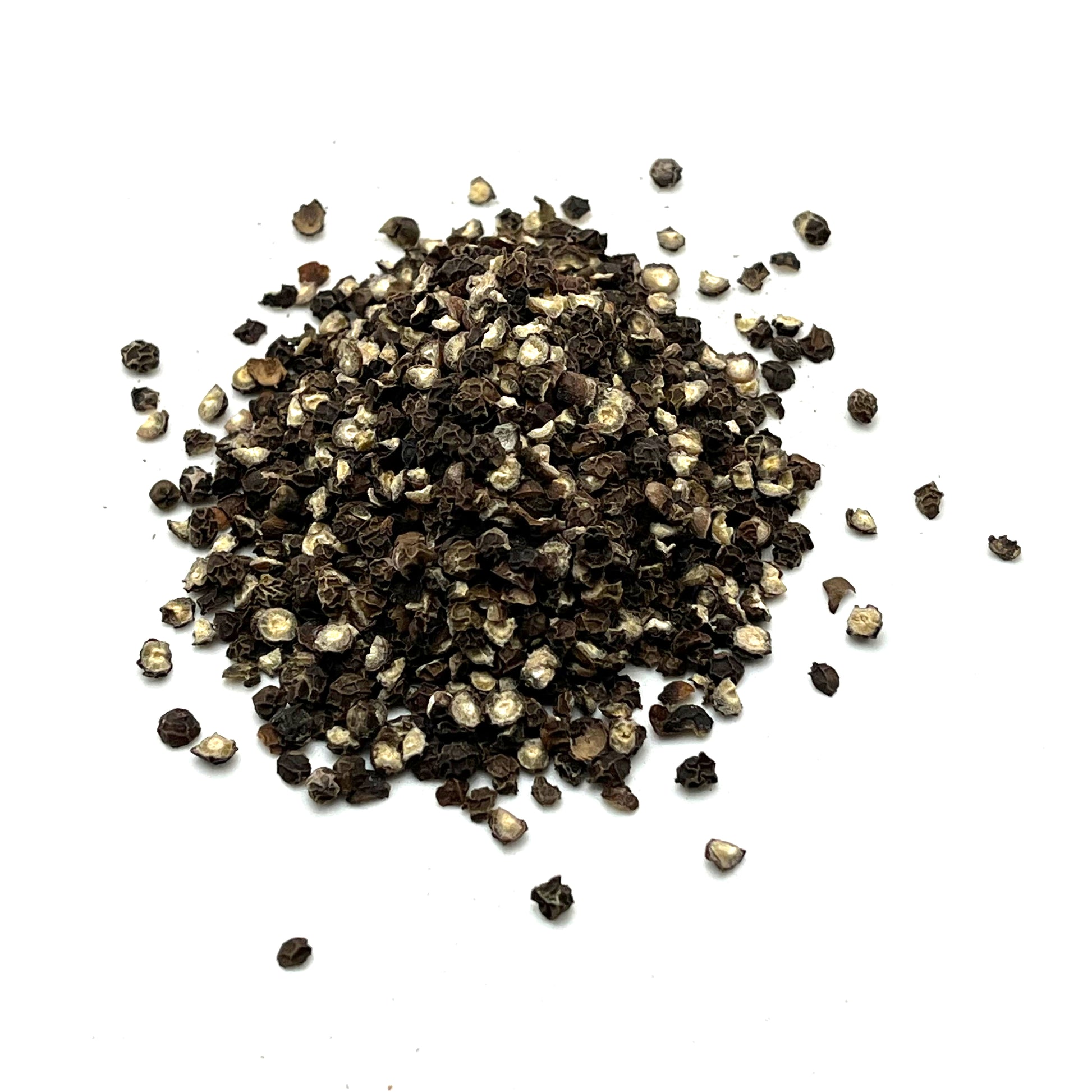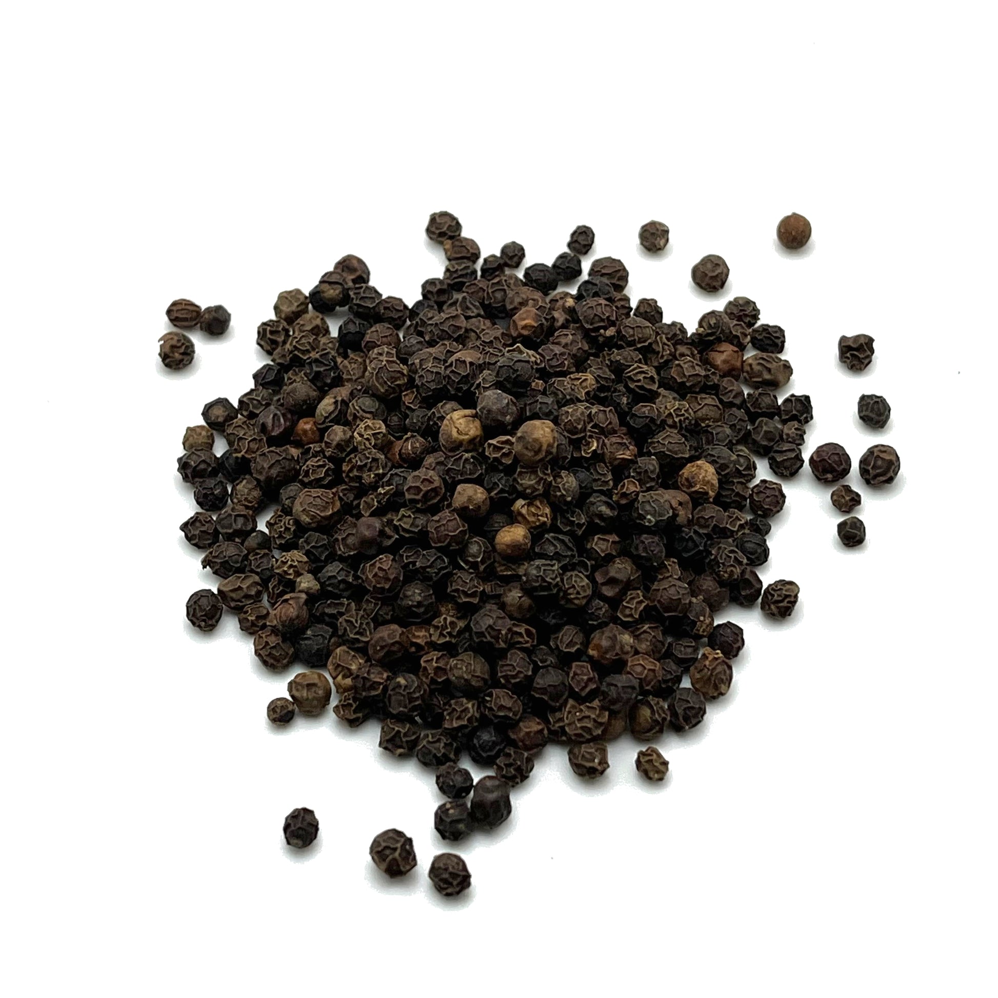 Description: The second most common spice (only surpassed by salt) in the world today, Black Pepper is known by many names including ‘Fulful’, ‘Wu Jiu’, ‘Hu Jiao’, ‘Biber’, ‘Felfel’, ‘Poivre’, ‘Pfeffer’, ‘Peperi’, Merica’, ‘Piobar’, ‘Pepe’, ‘Koshō’, ‘Perets’, ‘Pimienta’, and ‘Kali Mirch’, Black Pepper is one of the world’s most ancient spices and its popularity can be seen by its use in the vast majority of savory dishes from almost all of the world’s cuisines. Black Peppercorns are the dried berries (called ‘drupes’) of the pepper vine that is native to the tropical Malabar coast of India where it has been cultivated and exported for more than 4,000 years. For Black Pepper, the drupes are harvested green and then dried for several days in the sun where they shrivel, ferment, and turn nearly black in color before being sold whole, ground, or cracked.